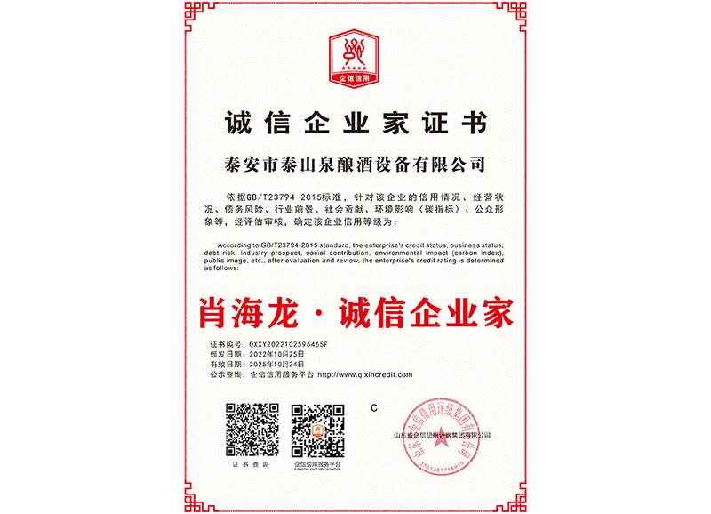 泰安市泰山泉釀酒設備有限公司,是一家專業從事釀酒設備機械化研發并集技術咨詢,工程設計,制造安裝,人員培訓及售后服務為一體的綜合性企業,本公司主要產品為:大曲清香、小曲清香、大曲醬香、大曲濃香等香型白酒機械化設備?! ”竟九c中國科學院自動化研究所簽訂技術服務合同,引進先進技術,研究生產全自動化機械釀酒設備,由中國科學自動化研究所的技術支持,打造最先進的生產釀酒設備,公司有信心打造全國最先進白酒...